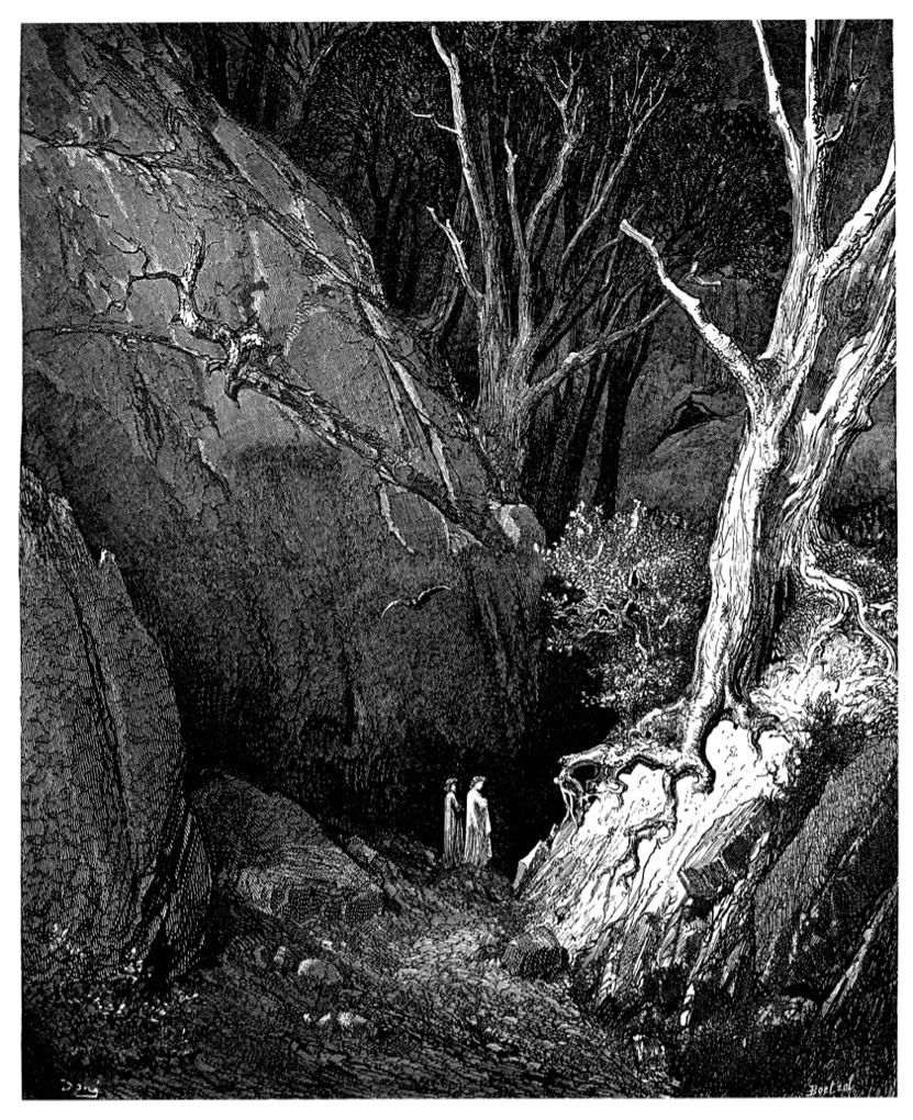 (Gustave Doré, The Divine Comedy: Inferno, Dante and Virgil leaving the dark wood, 1861)